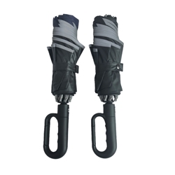 Three Folding Reverse Car Umbrella Automatic with Reflective Safety Strips and Hook Lock Handle UV Coated protection